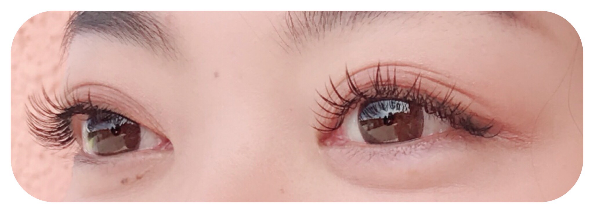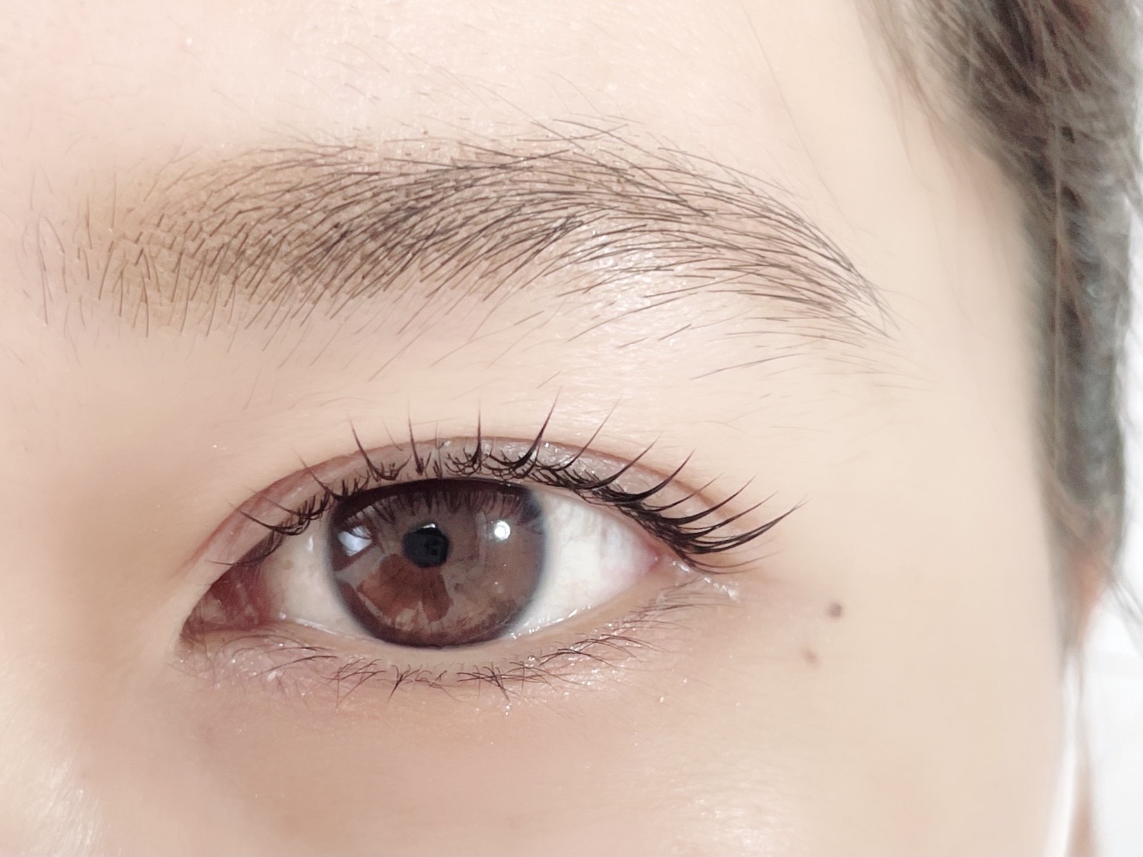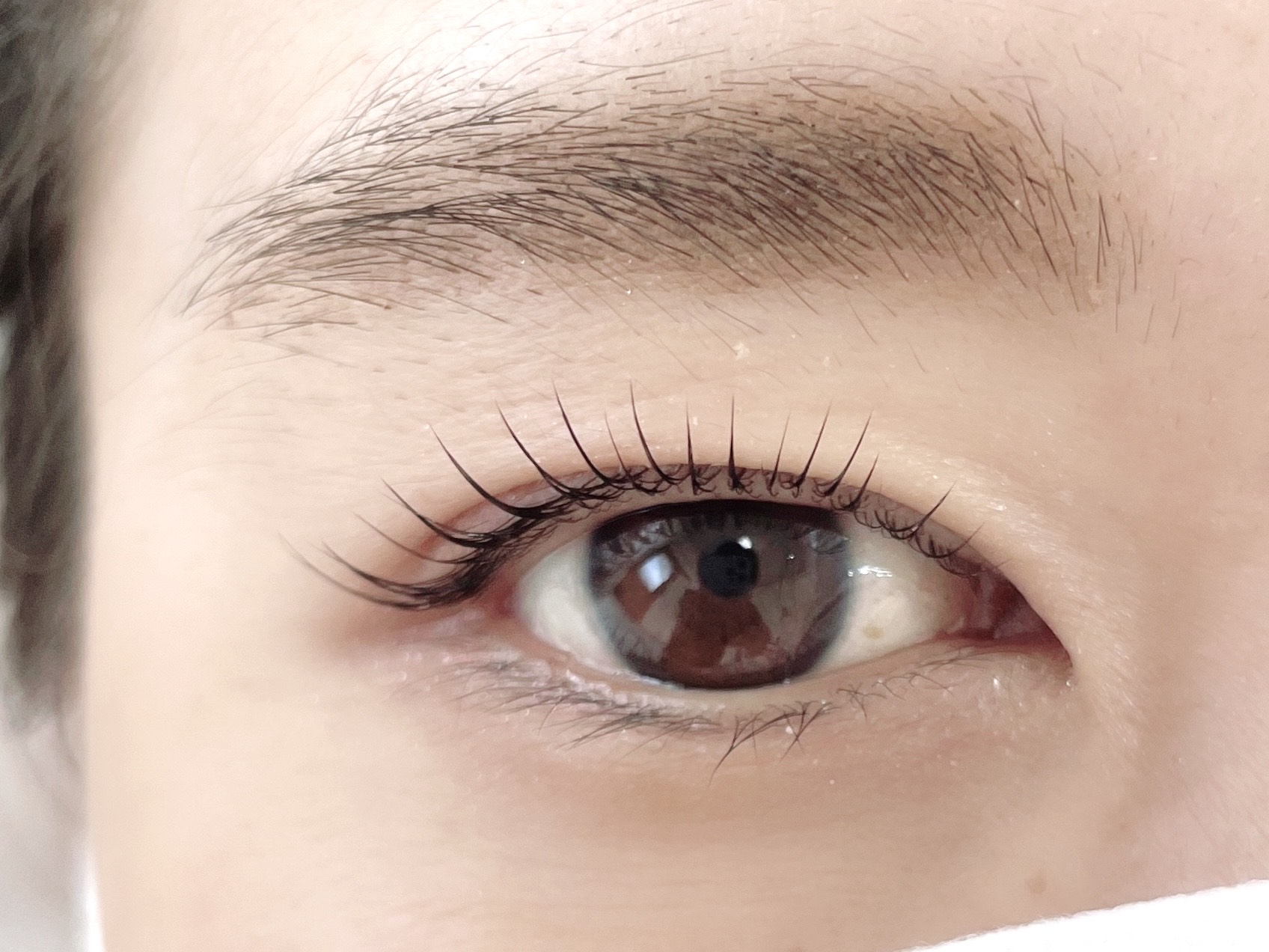 まつげが白目を覆って、目元の印象が暗くなってしまっています。パリジェンヌラッシュリフトでは、目頭目尻の矯正効果によって、まぶた全体がリフトアップ。白目に光がはいり、瞳を自然に輝かせます。